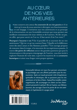 Pourquoi s’incarne-t-on ? Est-il possible de se souvenir de ses vies antérieures ? Qu’est-ce qu’un contrat d’âme ? Quelle est la différence entre des âmes sœurs et des flammes jumelles ? Cet ouvrage propose de remonter dans le temps, à la rencontre de vos expériences passées. À travers des pistes de réflexion autour des grandes questions que pose la réincarnation et les propres témoignages de l’auteure, vous êtes invité à explorer l’histoire de votre âme, percer les mystères de vos aventures karmiques et ainsi vous forger votre propre opinion.