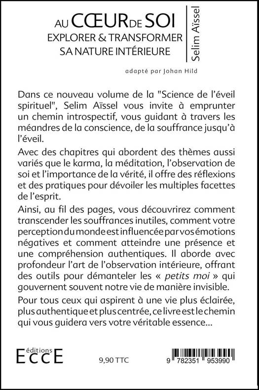 Dans ce nouveau volume de la "Science de l’éveil spirituel", Selim Aïssel vous invite à emprunter un chemin introspectif, vous guidant à travers les méandres de la conscience, de la souffrance jusqu’à l’éveil. Avec des chapitres qui abordent des thèmes aussi variés que le karma, la méditation, l’observation de soi et l’importance de la vérité, il offre des réflexions et des pratiques pour dévoiler les multiples facettes de l’esprit. Ainsi, au fil des pages, vous découvrirez comment transcender les souffrances inutiles, comment votre perception du monde est influencée par vos émotions négatives et comment atteindre une présence et une compréhension authentiques. Il aborde avec profondeur l’art de l’observation intérieure, offrant des outils pour démanteler les « petits Moi » qui gouvernent souvent notre vie de manière invisible. Pour tous ceux qui aspirent à une vie plus éclairée, plus authentique et plus centrée, ce livre est le chemin qui vous guidera vers votre véritable essence...