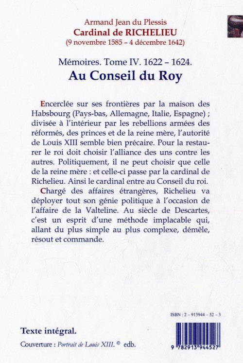 Encerclée sur ses frontières par la maison des Habsbourg (Pays-bas, Allemagne, Italie, Espagne) ; divisée à l'intérieur par les rebellions armées des réformés, des princes et de la reine mère, l'autorité de Louis XIII semble bien précaire. Pour la restaurer le roi doit choisir l'alliance des uns contre les autres. Politiquement, il ne peut choisir que celle de la reine mère : et celle-ci passe par la cardinal de Richelieu. Ainsi le cardinal entre au Conseil du roi.