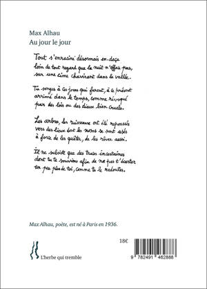 Nous retrouvons dans ce dernier recueil les poèmes courts dont Max Alhau maîtrise si bien l'écriture. Le poème, qu’on lit vite, ouvre des chemins de pensées infinis.