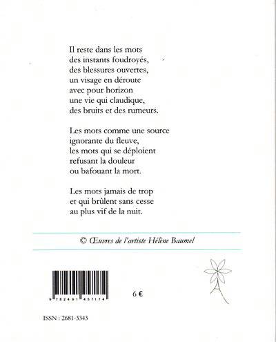 Les mots jamais de trop et qui brûlent sans cesse au plus vif de la nuit.