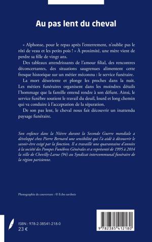 « Alphonse, pour le repas après l'enterrement, n'oublie pas le rôti de veau et les petits pois ! » À proximité, une mère vient de perdre sa fille de vingt ans. Des tableaux attendrissants de l'amour filial, des rencontres déconcertantes, des situations saugrenues alimentent cette fresque historique sur un métier méconnu : le service funéraire. La mort désoriente et plonge les proches dans la nuit. Les métiers funéraires organisent dans les moindres détails l'hommage que la famille entend rendre à son défunt. Ainsi, le service funèbre soutient le travail du deuil, lourd et long chemin qui va conduire à l'acceptation de la séparation. De son pas lent, le cheval nous fait découvrir un inattendu paysage funéraire.