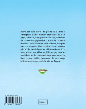 Lorsqu'une maman française, née à Perpignan, et un papa Japonais, vivant à Tokyo, ont une petite fille, leur vie, évidemment, est totalement bouleversée. La vie de la petite Nami est une aventure quotidienne, croquée par sa maman illustratrice, pétrie de féminisme et d'humanisme à la française, et qui élève sa fille au pays où les traditions et le consumérisme sont rois. Un livre tendre, drole, émouvant. Et un nouveau voyage, au plus près de la vie au Japon, signée de l'auteur de “J'aime le Natto”.