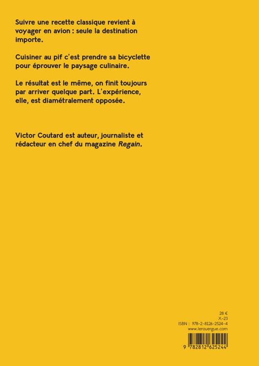 Victor Coutard déteste suivre les recettes à la lettre. En cuisine, il préfère improviser. Mais c'est tout un art ! Dans ce livre il nous donne les clés de sa cuisine au pif : apprendre à cuisiner avec ses cinq sens, avoir le bon matériel, remplir correctement son garde-manger, connaître les différentes familles de goût et savoir les associer, découvrir les herbes aromatiques, les graines, les fruits secs, les épices et leurs usages, apprendre les sauces inratables qui animent les assiettes les plus banales... Il propose ensuite 15 menus soit 45 plats pour apprendre à cuisiner au pif !