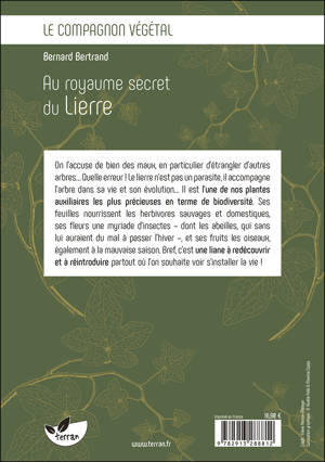 On l’accuse de bien des maux, en particulier d’étrangler d’autres arbres… Quelle erreur ! Le lierre n’est pas un parasite, il accompagne l’arbre dans sa vie et son évolution… Il est l’une de nos plantes auxiliaires les plus précieuses en terme de biodiversité. Ses feuilles nourrissent les herbivores sauvages et domestiques, ses fleurs une myriade d’insectes – dont les abeilles, qui sans lui auraient du mal à passer l’hiver –, et ses fruits les oiseaux, également à la mauvaise saison. Bref, c’est une liane à redécouvrir et à réintroduire partout où l’on souhaite voir s’installer la vie !