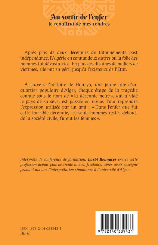 Après plus de deux décennies de tâtonnements post indépendance, l'Algérie en connut deux autres où la folie des hommes fut dévastatrice. En plus des dizaines de milliers de victimes, elle mit en péril jusqu'à l'existence de l'État. À travers l'histoire de Hourya, une jeune fille d'un quartier populaire d'Alger, chaque étape de la tragédie connue sous le nom de la décennie noire, qui a vidé le pays de sa sève, est passée en revue. Pour reprendre l'expression utilisée par un ami: Dans l'enfer que fut cette horrible décennie, les seuls hommes restés debout, de la société civile, furent les femmes .