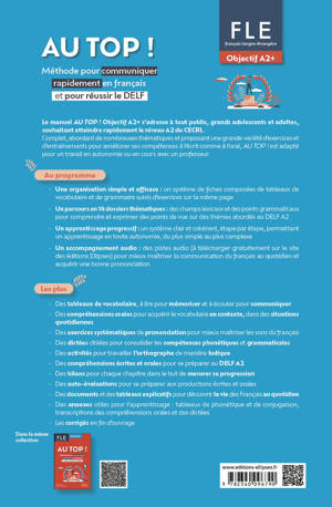 À destination de ceux qui souhaitent atteindre rapidement le niveau A2+ du cadre européen (CECRL) en français et préparer le DELF A2 efficacement, cette nouvelle méthode s’appuie sur une démarche simple, logique et progressive.