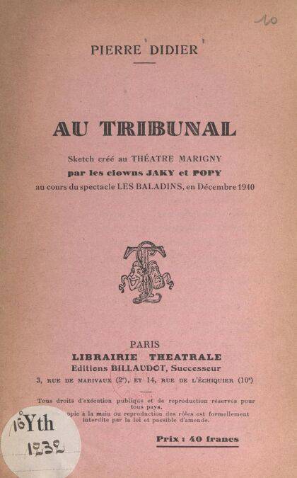 Sketch créé au Théâtre Marigny par les clowns Jaky et Popy au cours du spectacle les Baladins, en décembre 1940