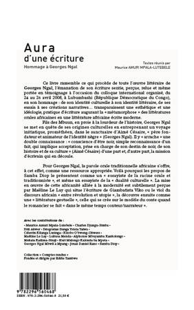 Ce livre rassemble ce qui procède de toute l'oeuvre littéraire de Georges Ngal, l'émanation de son écriture sentie, perçue, relue et même portée en témoignage à l'occasion du colloque international organisé, du 24 au 26 avril 2008, à Lubumbashi (République Démocratique du Congo), en son hommage : de son identité culturelle à son identité littéraire, de ses essais à ses créations narratives transparaissent une esthétique et une idéologie, pratique d'écriture augurant la « métamorphose » des littératures orales africaines en une littérature africaine écrite moderne.