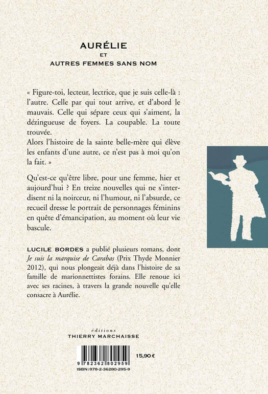 « Figure-toi, lecteur, lectrice, que je suis celle-là : l’autre. Celle par qui tout arrive, et d’abord le mauvais. Celle qui sépare ceux qui s’aiment, la dézingueuse de foyers. La coupable. La toute trouvée.<br /> Alors l’histoire de la sainte belle-mère qui élève les enfants d’une autre, ce n’est pas à moi qu’on la fait. »<br /><br /> Qu’est-ce qu’être libre, pour une femme, hier et aujourd’hui ? En treize portraits qui ne s’interdisent ni la noirceur, ni l’humour, ni l’absurde, ce recueil de nouvelles dresse le portrait de personnages féminins en quête d’émancipation, au moment où leur vie bascule.<br /><br /> Lucile BORDES a publié plusieurs romans, dont "Je suis la marquise de Carabas" (Prix Thyde Monnier 2012), qui nous plongeait déjà dans l’histoire de sa famille de marionnettistes forains. Elle renoue ici avec ses racines, à travers la grande nouvelle qu’elle consacre à Aurélie.