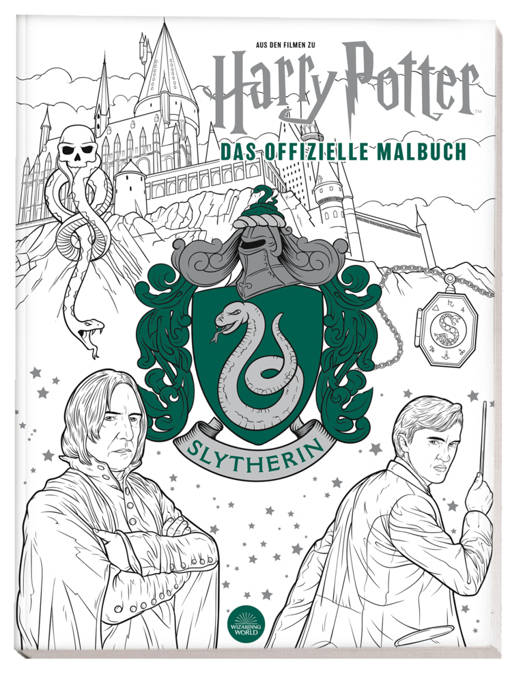SLYTHERIN MALBUCHBegib dich auf ein zauberhaftes Mal-Abenteuer durch die Welt von Slytherin!Ob dunkle Zauberer wie Lord Voldemort und seine Todesser, Professor Snapes Zaubertränke-Unterricht oder Salazar Slytherins Kammer des Schreckens - hier finden sich die unheimlichsten Motive und unvergesslichen Szenen rund um das Haus Slytherin. Mit neuen detailgetreuen Illustrationen der berühmt-berüchtigten Figuren, düsteren Objekte, gefährlichen Kreaturen und geheimnisvollen Orten aus den Harry-Potter