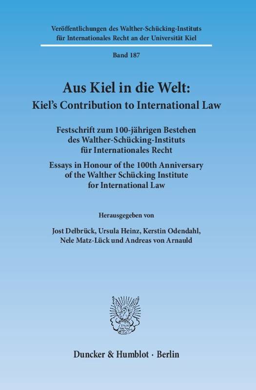 "Aus Kiel in die Welt". Der Titel der Festschrift, mit der das 100-jährige Bestehen des Walther-Schücking-Instituts für Internationales Recht an der Universität Kiel gewürdigt wird, mag auf den ersten Blick irritieren. Der Untertitel "Kiel's Contribution to International Law" verdeutlicht allerdings, was gemeint ist: Ehemalige Mitarbeiter/innen des Instituts bekleiden Lehrstühle im In- und Ausland, sind im Auswärtigen Amt tätig, in Ministerien, in der Richterschaft und Anwaltschaft. Alle ehemaligen Doktorand/innen, Habilitand/innen und natürlich auch die ehemaligen und jetzigen Direktor/innen wurden daher gebeten, einen Beitrag für die Festschrift zu schreiben - um ihren heutigen Tätigkeitsbereich aufzuzeigen und um ihre bleibende Verbundenheit mit dem Institut zu dokumentieren. Ergänzt wird der Band durch eine Liste aller Doktorand/innen und Habilitand/innen des Instituts seit 1914 sowie eine Zusammenstellung aller Bände, die seit 1915 in den diversen Institutsreihen erschienen sind.