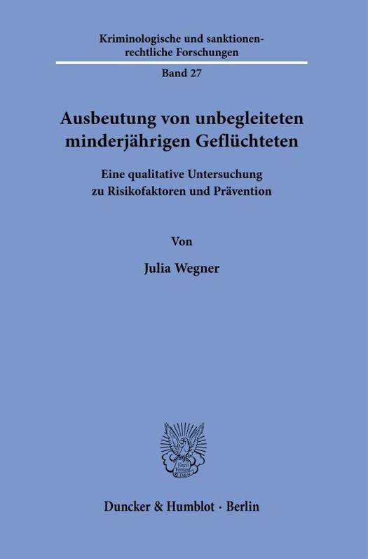 English summary: Exploitation of Unaccompanied Minor Refugees. A Qualitative Study on Risk Factors and Prevention To what extent are unaccompanied minor refugees at risk of becoming a victim of exploitation? This study addresses this question from a legal, criminological and empirical perspective. The results show that it must be assumed that unaccompanied minor refugees face an increased risk of getting into an exploitative situation. At the same time, the risk is reduced by a good integration of the young refugees, especially into a social structure. German description: Die Autorin untersucht aus rechtlicher und kriminologischer Perspektive, inwiefern es einen Zusammenhang gibt zwischen dem Merkmal unbegleiteter minderjahriger Gefluchteter und dem Risiko, Opfer einer Ausbeutungssituation zu werden. Neben der (straf-)rechtlichen Einordnung des Tatbestandes Menschenhandel und angrenzender Delikte werden dazu sowohl auslanderrechtliche als auch kinder- und jugendhilferechtliche Ausfuhrungen erortert. Aus kriminologischen Erkenntnissen werden die Risiken fur die Opferwerdung abgeleitet. Daran anschliessend werden im empirischen Teil die Ergebnisse der qualitativen Interviewstudie prasentiert. Die Ergebnisse zeigen insgesamt ein erhohtes Risiko fur Ausbeutungssituationen, denen unbegleitete minderjahrige Gefluchtete ausgesetzt sind, wobei sich das Risiko deutlich reduziert, je besser die jungen Gefluchteten eingebunden sind, vor allem in soziale Strukturen und Netzwerke.