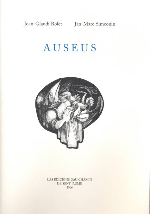 Vingt-quatre portraits d’oiseaux offrant très peu de qualités aviaires mais chacun, au plus haut point, son défaut tout humain : émouvants, horripilants, méchants, dérisoires, ballottés entre destinée et fatalité. Onze ayant trouvé image grâce aux eaux-fortes de Jan-Marc Simeonin. Joan-Glaudi Rolet nous avait déjà assemblé un gros bouquet de FLORS. Il nous donne ici un plein ciel d’AUSEUS. Il a aussi dans sa besace une bonne basse-cour de JAUS et un vaste pré d’OVELHAS. Grand lecteur d’entre les grands, il dit : «En fait, j’écris ce que je ne trouve pas à lire. »