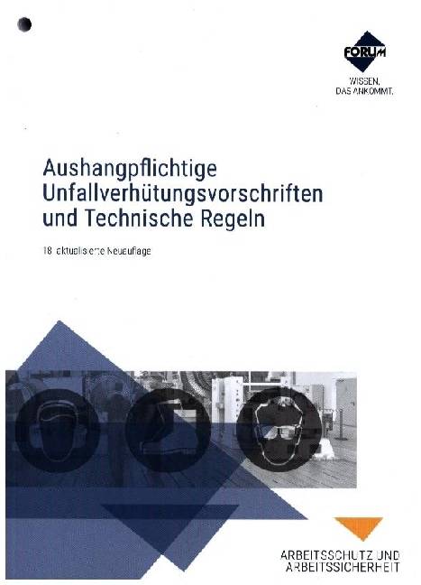 Die aktuelle Sammlung "Aushangpflichtige Unfallverhütungsvorschriften und Technische Regeln" der FORUM VERLAG HERKERT GMBH enthält sämtliche relevanten Texte gemäß DGUV, UVV sowie wichtige Technische.Arbeitgeberinnen und Arbeitgeber erfüllen damit zuverlässig ihre gesetzlich vorgeschriebenen Aushang- und Unterweisungspflichten (gem. 12 DGUV und 4 DGUV Vorschrift 1). Erhältlich als Printfassung mit Lochung oder als PDF-Datei, bietet das Produkt eine sichere Lösung für alle, die ohne Rechercheaufwand rechtssicher handeln wollen. Jetzt informieren und Aushangpflicht zuverlässig erfüllen.