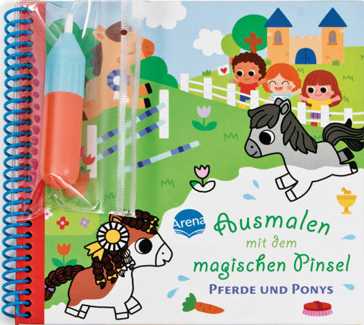 In diesem Malbuch mit Wassertankpinsel laden tolle Pferde- und Pony-Szenen Kinder ab 3 Jahren dazu ein, die Bilder in Farbe erscheinen zu lassen. Einfach den Zauberpinsel mit Wasser befüllen und über das Bild streichen - schon ist alles bunt. Auf den wimmeligen Ausmalbildern gibt es viel zu entdecken: Welches Pony trägt einen Strohhut? Welches Pferd belegt den ersten Platz beim Turnier? Und schau, wie viel Spaß sie am Strand haben!