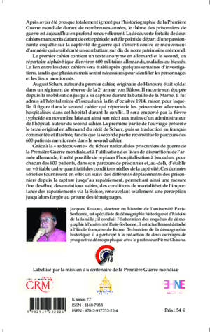 August Scharr était soldat dans un régiment de réserve de la 2e armée von Bûlow. Il raconte son épopée depuis la mobilisation jusqu'à sa capture durant la bataille de la Marne. Il fut admis à l'hôpital mixte d'Issoudun et figure donc à ce titre dans le second cahier qui répertorie les prisonniers allemands admis dans cet hôpital. Il est emporté par la fièvre typhoïde en novembre, laissant son récit aux mains d'un administrateur de l'hôpital, auteur du second cahier.