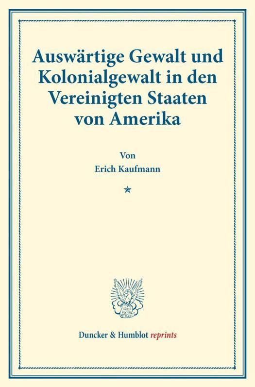Auswartige Gewalt Und Kolonialgewalt in Den Vereinigten Staaten Von Amerika