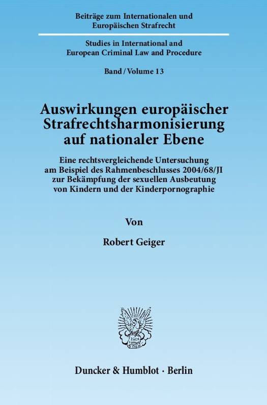 Die "Europäisierung", d.h. die unionsrechtliche Determinierung des materiellen Strafrechts ist eines der zentralen Kennzeichen der jüngeren kriminalpolitischen Entwicklung in Deutschland. Diese Beobachtung bildet den Ausgangspunkt und Rahmen der vorliegenden Untersuchung. Der Zugriff auf diese allgemeine Problematik erfolgt dabei anhand eines konkreten Stückes "europäischer/deutscher" Strafgesetzgebung, welches seinerzeit auch in der breiteren Öffentlichkeit Beachtung fand: Den Gegenstand der vorliegenden Untersuchung bilden der Rahmenbeschluss 2004/68/JI des Rates vom 22. Dezember 2004 zur Bekämpfung der sexuellen Ausbeutung von Kindern und der Kinderpornografie sowie die zu seiner Umsetzung in Deutschland, Österreich und England ergriffenen gesetzlichen Maßnahmen. Zusätzlich werden die durch das Inkrafttreten des Vertrags von Lissabon eingetretenen Neuregelungen des Kompetenzgefüges anhand der am 13. Dezember 2011 verabschiedeten Richtlinie des Europäischen Parlaments und des Rates zur Bekämpfung des sexuellen Missbrauchs und der sexuellen Ausbeutung von Kindern sowie der Kinderpornographie veranschaulicht und der diesbezüglich in Deutschland bestehende weitere Umsetzungsbedarf dargestellt. Eingebettet ist die Untersuchung in Überlegungen zum europarechtlichen und verfassungsrechtlichen Kontext. Damit befasst sich die vorliegende Untersuchung mit einem Problem von großer Aktualität und Relevanz im Schnittfeld von Strafrecht, Europarecht und Rechtsvergleichung.