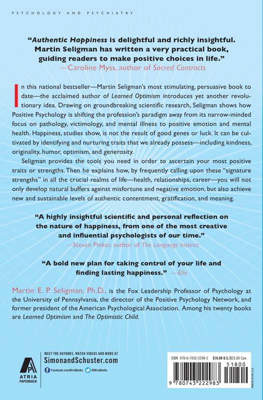 A national bestseller, Authentic Happiness launched the revolutionary new science of Positive Psychology--and sparked a coast-to-coast debate on the nature of real happiness. According to esteemed psychologist and bestselling author Martin Seligman, happiness is not the result of good genes or luck. Real, lasting happiness comes from focusing on one's personal strengths rather than weaknesses--and working with them to improve all aspects of one's life. Using practical exercises, brief tests, and a dynamic website program, Seligman shows readers how to identify their highest virtues and use them in ways they haven't yet considered. Accessible and proven,