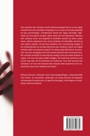 Van mensen met autisme wordt weleens gezegd dat ze in een eigen wereld leven die moeilijk te begrijpen is en waar je niet gemakkelijk tot kan doordringen. Traditioneel wordt dat ‘eigen wereldje’ afgebeeld als een glazen koepel. Maar klopt dit wel helemaal? Mensen met autisme leven wel degelijk in dezelfde wereld als ieder ander mens. Alleen registreert hun brein prikkels uit diezelfde wereld op een andere manier. En dat kan weleens voor verwarring zorgen in de communicatie en sociale interactie met anderen. Maar een eigen wereld onder een glazen koepel? De auteur gebruikt liever de metafoor van een wazig glas dat zich tussen iemand met en iemand zonder autisme bevindt en waarbij het nodig is om aan beide kanten te vegen, wil men het glas helder krijgen. Dit boek kan hierbij al een eerste stap zijn. Het is bestemd voor iedereen: voor wie iemand met autisme is of voor wie iemand met autisme kent of gewoon voor iemand die meer over autisme wil weten. Miriam Perrone voltooide twee lerarenopleidingen, respectievelijk voor basis- en secundair onderwijs. Ze kreeg daarna de diagnose autismespectrumstoornis. Ze geeft nu lezingen, vormingen en workshops omtrent autisme.