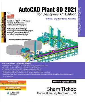 AutoCAD Plant 3D 2021 for Designers book introduces the readers to AutoCAD Plant 3D 2021, one of the world's leading application, designed specifically to create and modify P&ID's and plant 3D models. In this book, the author emphasizes on the features of AutoCAD Plant 3D 2021 that allow the user to design piping & instrumentation diagrams and 3D piping models. Also, the chapters are structured in a pedagogical sequence that makes this book very effective in learning the features and capabilities of AutoCAD Plant 3D 2021.