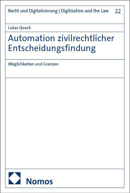 Das Werk erörtert die Frage, wie sich zivilrechtliche Entscheidungen mit Hilfe von Künstlicher Intelligenz automatisieren lassen. Es kann als Richtschnur dienen, welche Möglichkeiten und Hürden bei der technischen Umsetzung bestehen. Ausgehend vom methodischen Vorgehen eines Menschen wird zunächst die fehlende Umsetzbarkeit durch deterministische Algorithmen erörtert und sodann die technische Machbarkeit unter dem Einsatz von künstlicher Intelligenz analysiert. Abschließend wird ein Beispielsystem konzipiert, welches zur Entscheidungsautomation eingesetzt werden könnte. Das Werk richtet sich besonders an Personen, die sich mit der Modernisierung von Gerichtsverfahren, sowie mit den Bereichen der Rechtsinformatik und Legal Tech beschäftigen.