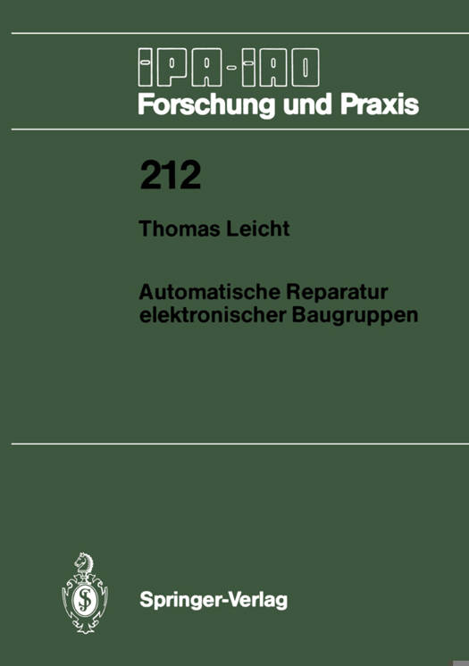 Die vorliegende Arbeit entstand wiihrend meiner Tiitigkeit als wissenschaftlicher Mitarbeiter am Fraunhofer-Institut fOr Produktionstechnik und Automatisierung (IPA), Stuttgart. Mein besonderer Dank gilt Herrn Professor Dr. h. c. mull. Dr. -Ing. Warnecke, der mir die Durchfiihrung der Arbeit an seinem Institut ermoglicht hat und Herrn Professor Dr. -Ing. habil. HOgel fOr die Obernahme des Mitberichts und die wertvollen Hinweise. FOr die vie len Anregungen und die konstruktive Kritik bei der Ausarbeitung danke ich Herm Dr. -Ing. Schweizer, Herrn Dr. -Ing. Emmerich, Herrn Dr. -Ing. Fischer, Herrn Dr. -Ing. KrOll, Herrn Dr. -Ing Schweigert und Herrn Dipl. -Ing. Spingler. Vor allem die enge Zusammenarbeit mit Herrn Dipl. -Ing. Weisener hat mir vie I bedeutet. Besonders erwiihnen mochte ich noch Herrn Dipl. -Ing. Maya und Herrn Dipl. -Ing. Reich, die zum Gelingen dieser Arbeit wesentlich beigetragen haben. Stuttgart, im Dezember 1994 Thomas Leicht INHAL TSVERZEICHNIS Seite 12 0 Abkiirzungen und Formelzeichen EinfUhrung 16 Problemstellung 16 1. 1 1. 2 Zielsetzung und Vorgehensweise 18 2 Stang der T Qhnik in der R Qaratyr 1 ktrQni: iQh r BaygrYQI2 n 20 2. 1 Fertigungseinrichtungen und Verfahren 20 Abloten von SMT-Bauelementen 22 2. 2 25 3 Analyse der BaugruQQenreQaratyr 3. 1 Fehlerklassifizierung und Fehlerhaufigkeiten 25 Analyse des reparaturrelevanten Produktspektrums 28 3. 2 Thermisches Verhalten und Energiebetrachtung an Lotstelle und 3. 3 Bauelement 30 Automatisierungshemmnisse und Ableitung von 3. 4 Entwicklungsschwerpunkten 33 4 Anforgerungen an ein automatisches ReQaratursyst m 35 4. 1 Anforderungen an das Gesamtsystem 36 Anforderungen an die Teilsysteme 4.