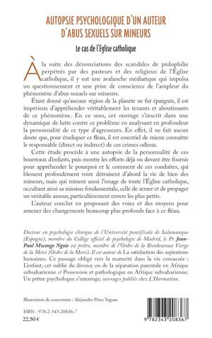 À la suite des dénonciations des scandales de pédophilie perpétrés par des pasteurs et des religieux de l'Église catholique, il y eut une avalanche médiatique qui impulsa un questionnement et une prise de conscience de l'ampleur du phénomène d'abus sexuels sur mineurs. Étant donné qu'aucune région de la planète ne fut épargnée, il est impérieux d'appréhender véritablement les tenants et aboutissants de ce phénomène. En ce sens, cet ouvrage s'inscrit dans une dynamique de lutte contre ce problème en analysant en profondeur la personnalité de ce type d'agresseurs.