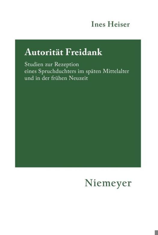 Aus diesem großen Bestand an Überlieferungsmaterial lässt sich ein kohärentes Freidankbild abstrahieren, wie es Bestandteil des kulturellen Gedächtnisses der Zeit gewesen sein muss: Freidank wird als Autorität behandelt, die auf gleicher Ebene wie weitere Referenzfiguren (die Kirchenväter, biblische Figuren, antike Autoren) ihren Platz innerhalb eines anerkannten Legitimationssystems hat. Als feste Bedeutungsbestandteile sind mit dieser Instanz "Freidank" die Qualitäten der Wahrheit und Gottgefälligkeit assoziiert. Umgekehrt wird innerhalb dieses kulturellen Systems die Chiffre "Freidank" als fiktive Urheberinstanz auch benutzt, um eben diese Qualitäten auf neue Inhalte zu übertragen - eine eigene Textgattung von "Freidanken" - lehrhafte Spruchdichtung mit hohem Wahrheitsanspruch - entsteht.