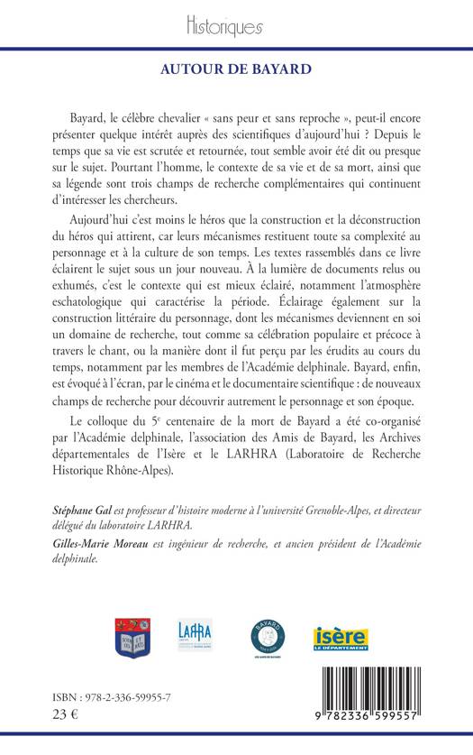 Bayard, le célèbre chevalier sans peur et sans reproche, peut-il encore présenter quelque intérêt auprès des scientifiques d'aujourd'hui ? Depuis le temps que sa vie est scrutée et retournée, tout semble avoir été dit ou presque sur le sujet. Pourtant l'homme, le contexte de sa vie et de sa mort, ainsi que sa légende sont trois champs de recherche complémentaires qui continuent d'intéresser les chercheurs. Aujourd'hui c'est moins le héros que la construction et la déconstruction du héros qui attirent, car leurs mécanismes restituent toute sa complexité au personnage et à la culture de son temps. Les textes rassemblés dans ce livre éclairent le sujet sous un jour nouveau. À la lumière de documents relus ou exhumés, c'est le contexte qui est mieux éclairé, notamment l'atmosphère eschatologique qui caractérise la période. Éclairage également sur la construction littéraire du personnage, dont les mécanismes deviennent en soi un domaine de recherche, tout comme sa célébration populaire et précoce à travers le chant, ou la manière dont il fut perçu par les érudits au cours du temps, notamment par les membres de l'Académie delphinale. Bayard, enfin, est évoqué à l'écran, par le cinéma et le documentaire scientifique: de nouveaux champs de recherche pour découvrir autrement le personnage et son époque. Le colloque du 5e centenaire de la mort de Bayard a été co-organisé par l'Académie delphinale, l'association des Amis de Bayard, les Archives départementales de l'Isère et le LARHRA (Laboratoire de Recherche Historique Rhône-Alpes)