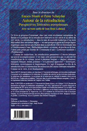 Comme les traductions, les retraductions permettent à l'oeuvre littéraire un nouvel accomplissement. C'est dans cette perspective que se placent les contributions de ce volume, ouvert à plusieurs langues anglais, allemand, espagnol, français, italien, polonais et à plusieurs approches historiques, littéraires, sociologiques et linguistiques. Il s'agit d'examiner le rôle de la retraduction dans la construction-déconstruction des canons littéraires européens. Comme on le verra, il est fondamental.