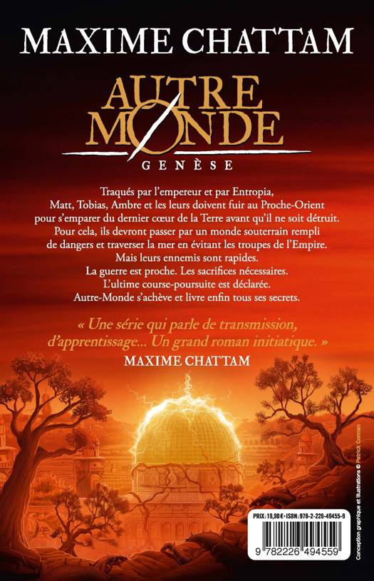 Traqués par l'empereur et par Entropia, Matt, Tobias, Ambre et les leurs doivent fuir au Proche-Orient pour s'emparer du dernier coeur de la Terre avant qu'il ne soit détruit. Pour cela, ils devront passer par un monde souterrain rempli de dangers et traverser la mer en évitant les troupes de l'Empire. Mais leurs ennemis sont rapides. La guerre est proche. Les sacrifices nécessaires. L'ultime course-poursuite est déclarée. Autre-Monde s'achève et livre enfin tous ses secrets.