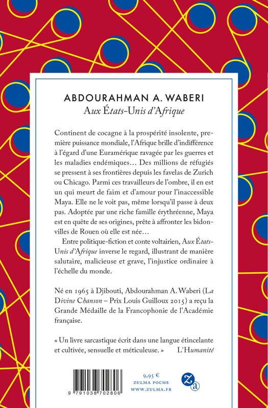 Rarement fiction sur l’Afrique aura aussi bien parlé de l’Europe. Et pour cause : dans Aux États-Unis d’Afrique, Abdourahman A. Waberi fait du continent noir le centre économique et intellectuel du monde, tandis que les damnés de la terre se concentrent dans une Euramérique miséreuse ; partant, il tend un miroir à l’Occident – celui du monde réel.
