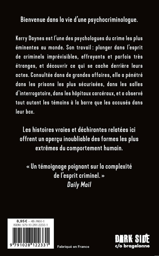 Kerry Daynes est l'une des psychologues du crime les plus éminentes au monde. Son travail : plonger dans l'esprit de criminels imprévisibles, effrayants et parfois très étranges, et découvrir ce qui se cache derrière leurs actes. Consultée dans de grandes affaires, elle a pénétré dans les prisons les plus sécurisées, dans les salles d'interrogatoire, dans les hôpitaux carcéraux, et a observé tout autant les témoins à la barre que les accusés dans leur box.