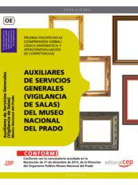 El presente manual contiene el material adecuado para la preparación eficaz de las pruebas selectivas de acceso a la categoría de Auxiliar de Servicios Generales (Vigilancia de Salas) del Museo Nacional de Prado. Este volumen contiene una colección de test psicotécnicos y de evaluación de las competencias personales para afrontar: - las pruebas de Comprensión verbal y de Lógica matemática y atención, de la primera parte de la oposición, y - la evaluación de competencias, de la segunda parte de la oposición. Conforme a lo establecido en la Resolución de 21 de diciembre de 2012, de la Dirección del Organismo Público Museo Nacional del Prado, por la que se convocan procesos selectivos de la categoría de Auxiliar de Servicios Generales (Vigilancia de Salas), sujetos al Convenio Colectivo del Museo Nacional de Prado.