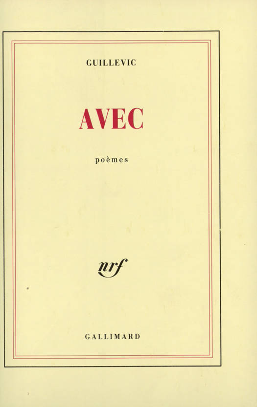 Avec, dit le Larousse, signifie : en même temps, en compagnie de, à l'aide de, au moyen de, envers... C'est bien ainsi que l'entend l'auteur d'Avec. Le précédent recueil de poèmes de Guillevic portait le titre de Sphère : sphère du monde, de la planète, de la vision intérieure, du poème. Avec poursuit l'enquête. Quand on est dans le poème, on est avec quelque chose. Avec quoi ? avec l'autre ? Avec quelque chose qui a été puisé par le poète dans le monde extérieur ou intérieur, ou peut-être et plutôt dans cette pénombre où ces deux sphères se confondent. Ce quelque chose est comme un fauve qui ne se laisse amadouer que par un certain langage. Le plus curieux est que le chasseur a le sentiment que ce langage de nulle part lui est souillé par le gibier lui-même. Si bien qu'à la fin il ne sait plus sur quoi il s'acharne, fauve ou langage. Les deux, sans doute, et quand il les tient tous les deux se reconnaissent et s'adaptent ; alors sont célébrées les noces.