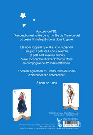 Un pendant chrétien aux cartes Pokémon : 12 cartes de saints et témoins à collectionner avec leur support. D’autres CredoCartes sont disponibles dans La Toussaint à colorier, dans Avec les saints vers Noël, Avec les saints vers Pâques, Avec les saints vers l’Ascension et la Pentecôte + dans le numéro 511 de Patapon. Un livret pédagogique, spirituel et ludique pour mieux comprendre la place de la Vierge Marie et mieux la prier. 6 pages (12 demi-pages) : comment ce saint m’aide concrètement à vivre avec Marie + 4 pages de couv (avec le lien vers les albums existants en CV3) + 2 pages d’explications + 4 pages de CredoCartes = 16 pages Saint Antoine de Padoue, sainte Bernadette de Lourdes, sainte Clotilde, saint Jean Bosco, saint Francesco de Fatima, sainte Ombeline, saint Stanislas Kostka, Marcel Van, Zélie Martin, saint Louis-Marie Grignion de Montfort, saint Luc l’évangéliste, saint Juanito de Guadalupe.