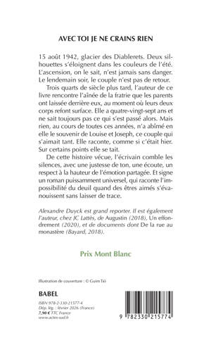 15 août 1942, glacier des Diablerets. Deux silhouettes s'éloignent dans les couleurs de l'été. L'ascension, on le sait, n'est jamais sans danger. Le lendemain soir, le couple n'est pas de retour. Trois quarts de siècle plus tard, l'auteur de ce livre rencontre l'aînée de la fratrie que les parents ont laissée derrière eux, au moment où leurs deux corps refont surface. Elle a quatre-vingt-sept ans et ne sait toujours pas ce qui s'est passé alors. Mais rien, au cours de toutes ces années, n'a abîmé en elle le souvenir de Louise et Joseph, ce couple qui s'aimait tant. Elle raconte, comme si c'était hier. Sur certains points elle se tait. De cette histoire vécue, l'écrivain comble les silences, avec une justesse de ton, une écoute, un respect à la hauteur de l'émotion partagée. Et signe un roman puissamment universel, qui raconte l'impossibilité du deuil quand des êtres aimés s'évanouissent sans laisser de trace.