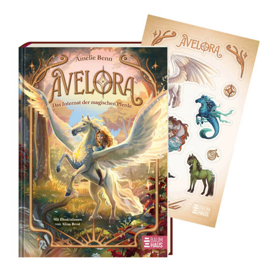 Pferde-Träume werden wahr am magischen Internat AveloraMit tollem Extra in der 1. Auflage: pferdestarker Stickerbogen (nur solange der Vorrat reicht)Als die 11-jährige Reena herausfindet, dass sie magische Pferde in ihrer wahren Gestalt sehen kann, steht ihre Welt Kopf. Niemals hätte sie gedacht, dass es Wasserpferde, Flammenpferde und Blütenpferde wirklich gibt! Kurz darauf erreicht sie eine Einladung in das geheime Internat Burg Avelora auf der mystischen Insel Galantis - ein sagenumwobener Ort, an dem Kinder lernen, mit Elementpferden umzugehen. Endlich erfährt Reena mehr über ihre seltene Gabe und die geheimnisvollen Pferde - und verbindet sich bei einem magischen Ritual mit ihrem Seelenpferd. Doch schon bald bedroht eine dunkle Magie das Internat, und gemeinsam mit ihrem Flügelpferd und ihren neuen Freunden muss Reena all ihren Mut zusammennehmen, um Avelora zu retten ... Eine zauberhafte Geschichte über ein geheimes Internat, Pferdemagie, Freundschaft und ZusammenhaltWunderschön illustriert: Mit vierfarbigem Vor- und Nachsatz sowie zauberhaften schwarz-weiß Illustrationen von Alina BrostDas Abenteuer beginnt: Band 1 einer magischen Pferde-Internatsgeschichte ab 9 Jahren - Band 2 erscheint im Herbst 2026, Band 3 im Frühjahr 2027Finde heraus, welches Seelenpferd zu dir passt! Mit einem Quiz am Ende des Buchs oder auf Baumhaus.com/Avelora-TestGestalte hier dein eigenes Seelenpferd: baumhausbande.com/spielen/charakter-tests-buchfinder/gestalte-dein-seelenpferd-aus-aveloraDieser Titel ist bei Antolin gelistet.