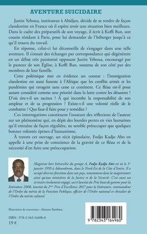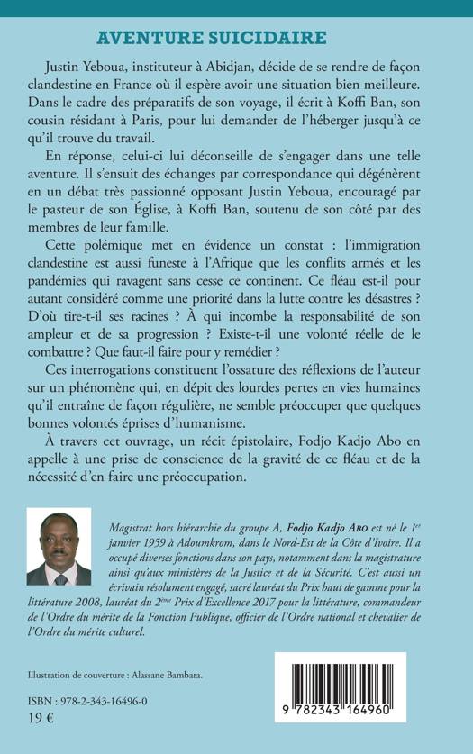 Justin Yeboua, instituteur à Abidjan, décide de se rendre de façon clandestine en France où il espère avoir une situation bien meilleure. Dans le cadre des préparatifs de son voyage, il écrit à Koffi Ban, son cousin résidant à Paris qui lui déconseille de s'engager dans une telle aventure. À travers ce récit épistolaire, Fodjo Kadjo Abo en appelle à une prise de conscience de la gravité de ce fléau qu'est l'immigration clandestine et de la nécessité d'en faire une préoccupation.