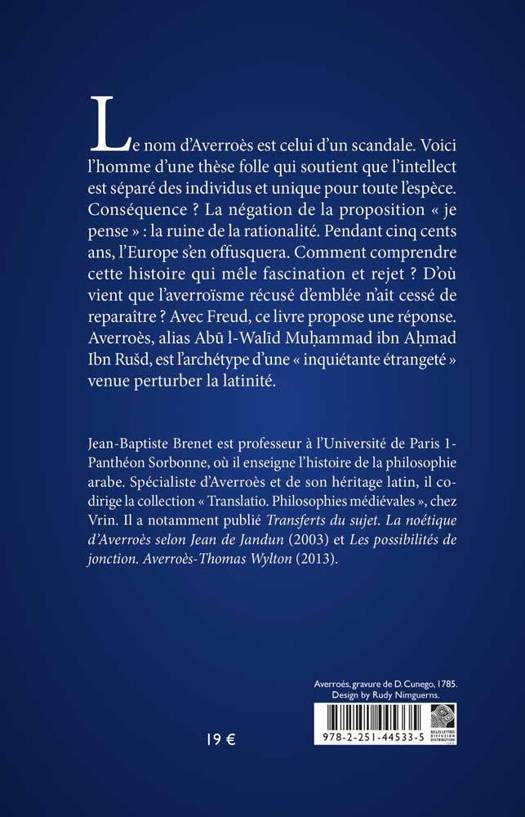 Conséquence ? La négation de la proposition « je pense » : la ruine de la rationalité. Pendant cinq cents ans, l’Europe s’en offusquera. Comment comprendre cette histoire qui mêle fascination et rejet ? D’où vient que l’averroïsme récusé d’emblée n’ait cessé de reparaître ? Avec Freud, ce livre propose une réponse.