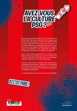 Plongez dans l’histoire captivante du Paris Saint-Germain, redécouvrez ses légendes et ses exploits mythiques à travers cet ouvrage original, pensé pour toute la famille. Que vous soyez jeune fan du club ou supporter de longue date, ce cahier sera le compagnon idéal de vos vacances.
