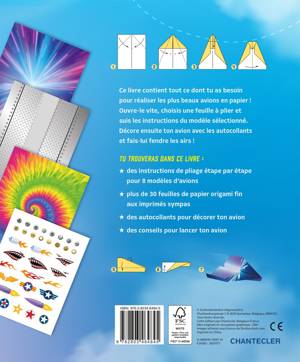 Ce livre contient tout ce dont tu as besoin pour réaliser les plus beaux avions en papier ! Ouvre-le vite, choisis une feuille à plier et suis les instructions du modèle sélectionné. Décore ensuite ton avion avec les autocollants et fais-lui fendre les airs ! Tu trouveras dans ce livre : - des instructions de pliage étape par étape pour 8 modèles d'avions - plus de 30 feuilles de papier origami fin aux imprimés sympas - des autocollants pour décorer ton avion - des conseils pour lancer ton avion