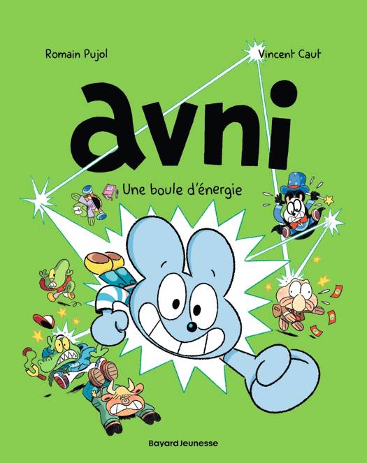 Avni est une vraie boule d'énergie : c'est toujours le premier pour jouer, courir, sauter, aller chercher les ballons envoyés par erreur dans les arbres, se transformer en tout et n'importe quoi et faire des bêtises pour animer la cour de récré. Il est difficile à rater ! Au point que ça peut parfois énerver un peu ses amis et parents, qui ne se privent pas toujours de lui dire. Alors, parfois, Avni se vexe. Et cette fois-ci, ça n'est pas rien : de boule d'énergie, il est devenu... une boule tout court. Un rond bleu inanimé, beaucoup moins marrant qu'Avni ! À présent, il n'y a plus personne pour aller chercher les ballons envoyés par erreur dans les arbres, se transformer en tout et n'importe quoi et faire des bêtises pour animer la cour de récré. Tout le monde s'ennuie d'Avni et s'inquiète... mais quand reviendra-t-il ? Heureusement, quand il s'agit de s'amuser, Avni n'est jamais le dernier, et ses amis le savent bien !