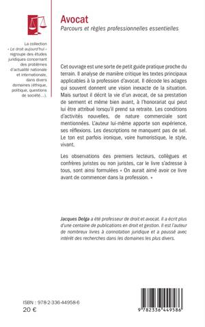 Cet ouvrage est une sorte de petit guide pratique proche du terrain. Il analyse de manière critique les textes principaux applicables à la profession d'avocat. Il décode les adages qui souvent donnent une vision inexacte de la situation. Mais surtout il décrit la vie d'un avocat, de sa prestation de serment et même bien avant, à l'honorariat qui peut lui être attribué lorsqu'il prend sa retraite. Les conditions d'activités nouvelles, de nature commerciale sont mentionnées. L'auteur lui-même apporte son expérience, ses réflexions. Les descriptions ne manquent pas de sel. Le ton est parfois ironique, voire humoristique, le style, vivant.