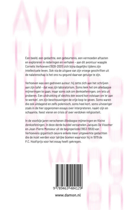 Cornelis Verhoeven was een van de meest originele en invloedrijke Nederlandse filosofen. Hij was bovendien een gedreven auteur; zijn oeuvre was gigantisch. In zijn nalatenschap bevinden zich nog veel ongepubliceerde essays. De ene keer gaat het om alledaagse mijmeringen, de andere keer om denkoefeningen, om iets uit te proberen. Voor Verhoeven kon een uitdrukking of slechts één woord volstaan om een nieuw ‘avontuur’ te beginnen, om zijn beschouwingen de vrije loop te geven. Die waren afwisselend uitdagend en zelfs polemisch, heel kort of uitvoeriger zoals in de hier opgenomen essays over interpreteren, naakt-zijn en schaamte, feest vieren en crisis of over verdoken religiositeit. Maar altijd waren ze origineel.