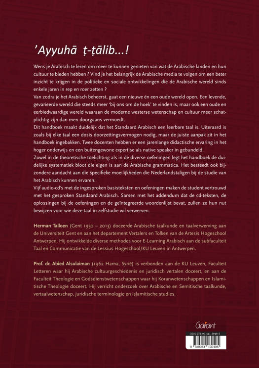 Dit handboek maakt duidelijk dat het Standaard Arabisch een leerbare taal is. Uiteraard is zoals bij elke taal een dosis doorzettingsvermogen nodig, maar de juiste aanpak zit in het handboek ingebakken. Twee docenten hebben er een jarenlange didactische ervaring in het hoger onderwijs en een buitengewone expertise als native speaker in gebundeld.