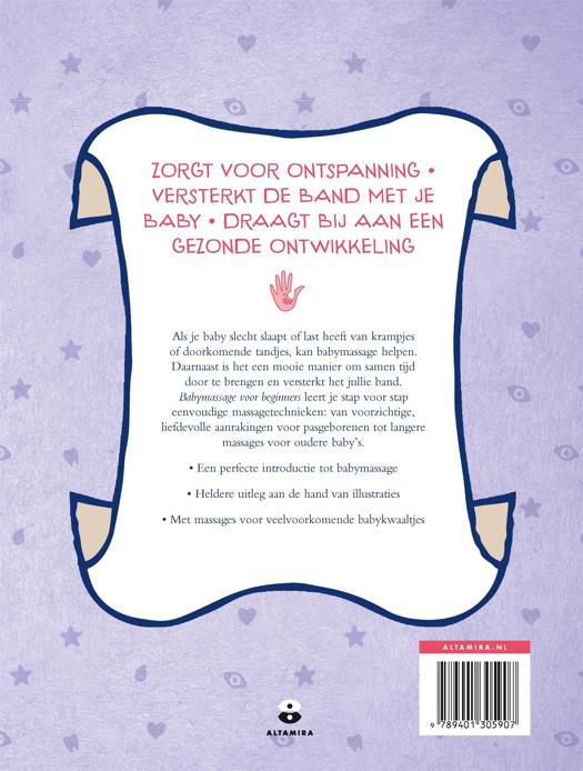 Maak kennis met babymassage met 'Babymassage voor beginners' van Jade Bescond. Ontdek hoe het masseren van je baby kan zorgen voor een betere nachtrust en verlichting bij krampjes of doorkomende tandjes. Naast het bevorderen van de gezondheid van je baby, versterkt babymassage ook de band tussen jou en je baby, en biedt het een waardevolle gelegenheid om samen tijd door te brengen. In 'Babymassage voor beginners' word je stap voor stap begeleid met behulp van de heldere illustraties bij de eenvoudige massagetechnieken. Leer zachte aanrakingen waarmee je je baby helpt te wennen aan de nieuwe wereld buiten de warme omhelzing van de buik, en ontdek massages die veelvoorkomende babykwaaltjes verzachten. 'Babymassage voor beginners' is onmisbaar voor iedere kersverse ouder.