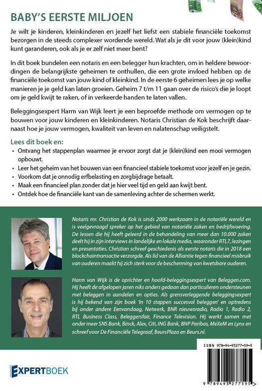 In dit boek bundelen een notaris en een belegger hun krachten, om in heldere bewoordingen de belangrijkste geheimen te onthullen, die een grote invloed hebben op de financiële toekomst van jouw kind of kleinkind. In de eerste 6 geheimen lees je op welke manieren je je geld kan laten groeien. Geheim 7 t/m 11 gaan over de risico's die je loopt om je geld kwijt te raken, of in verkeerde handen te laten vallen. Beleggingsexpert Harm van Wijk leert je een beproefde methode om vermogen op te